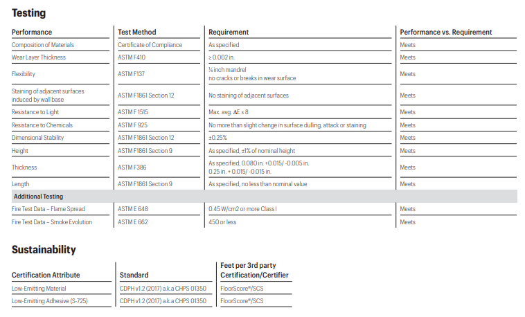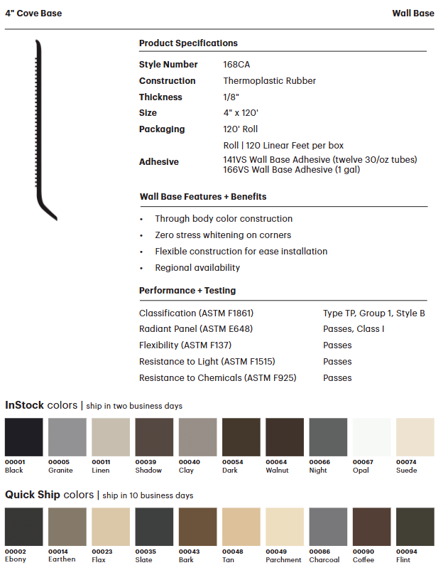 Product Specifications - Coved Wall Base - ASTM F1861, Type TP, Group 1, Style B