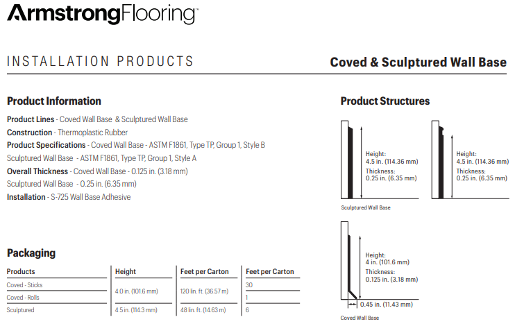 Coved & Sculptured Wall Base - Armstrong Wall Base.