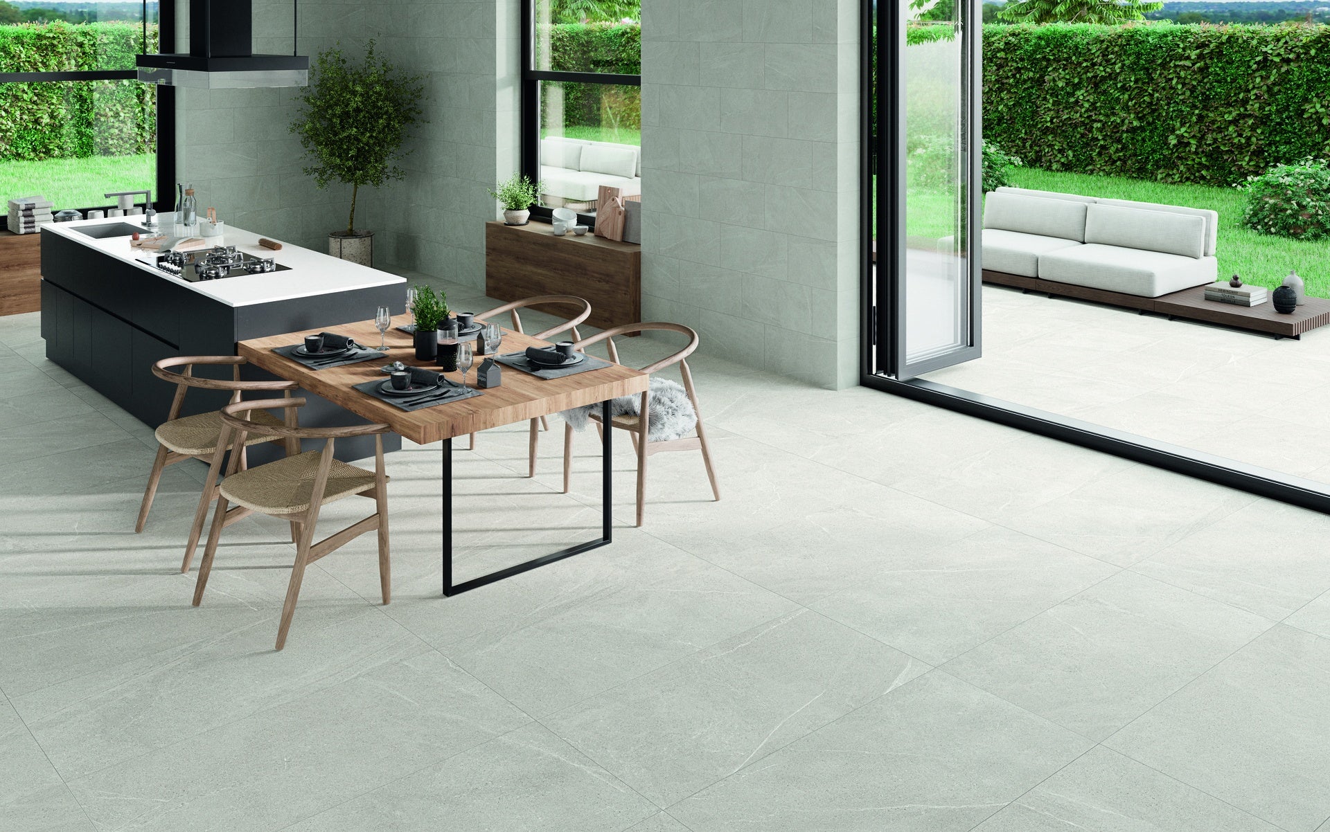 Bellevue White is a 30"x30" matte cement-look tile in a clean white tone.